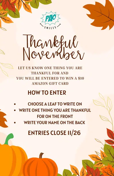 When you sign up for the kids club you get access to fun office raffles, prizes, birthday surprises, and more. As a Super PAO’R kids club member, you will receive a brand new PAO T-shirt and punch card. Bring these to every appointment to earn points to spin our prize wheels.